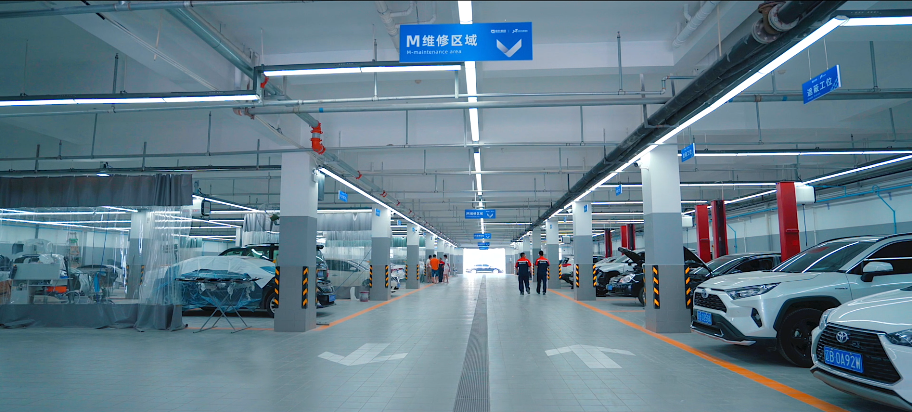 新葡的京集团35222vip钣喷体验中心目前已承接宝马、奥迪、沃尔沃、丰田、本田、日产等9个品牌的钣喷业务,按品牌划分3个主体车间,共有施工工位百余个,烤房6个,配套400余停车位;目前已实现烤房24小时全天候运行,最大化提升车间效率,减少客户车辆维修的等待时长,月度交车3000余台,日度平均接车100台,日度车间完工可达110台车。